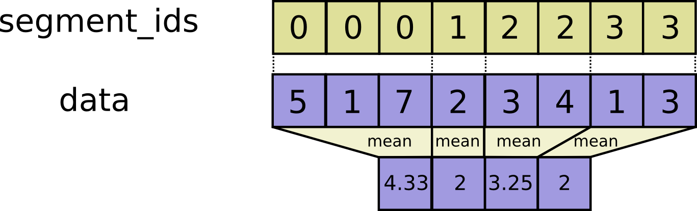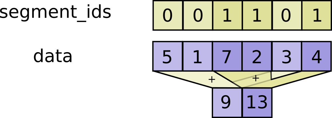 tf.segment_sum(data, segment_ids, name=None)tf.segment_prod(data, segment_ids, name=None)tf.segment_min(data, segment_ids, name=None)tf.segment_max(data, segment_ids, name=None)tf.segment_mean(data, segment_ids, name=None)tf.unsorted_segment_sum(data, segment_ids, num_segments, name=None)tf.sparse_segment_sum(data, indices, segment_ids, name=None)tf.sparse_segment_mean(data, indices, segment_ids, name=None)- Sequence Comparison and Indexing